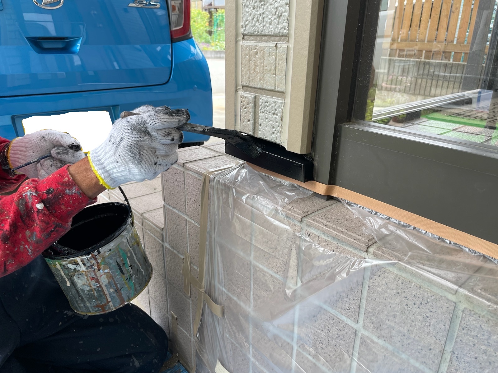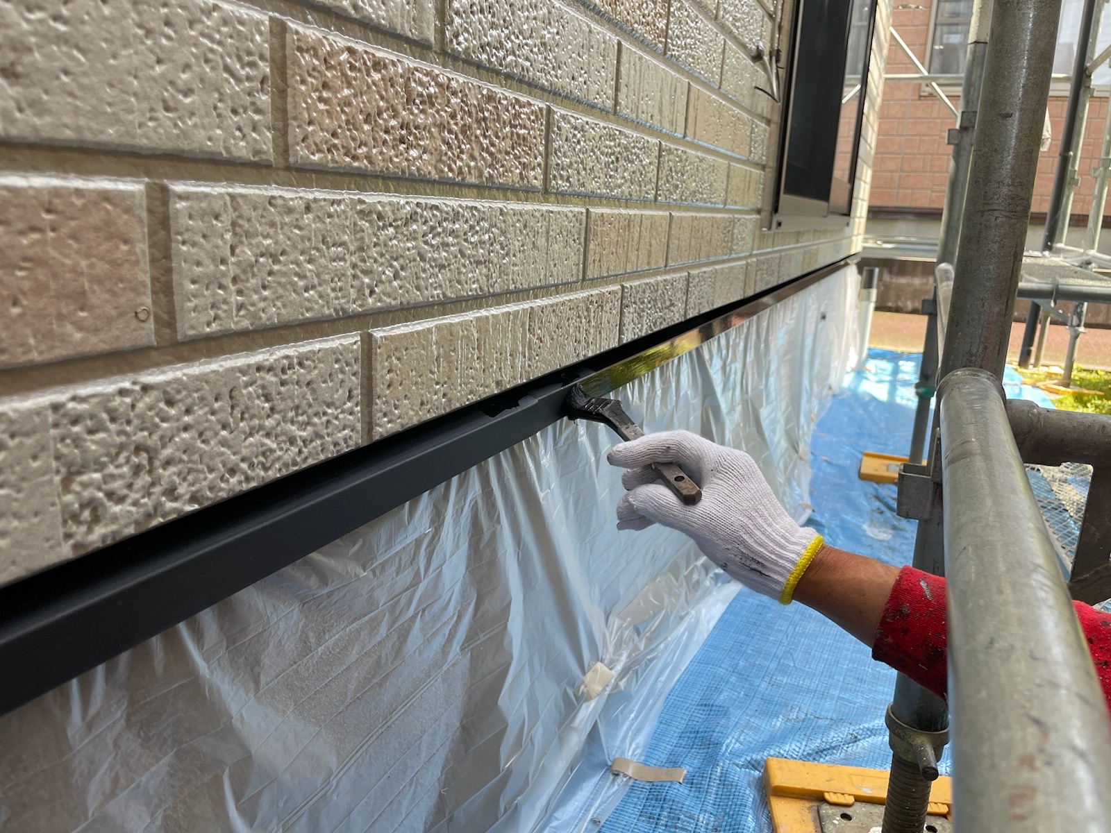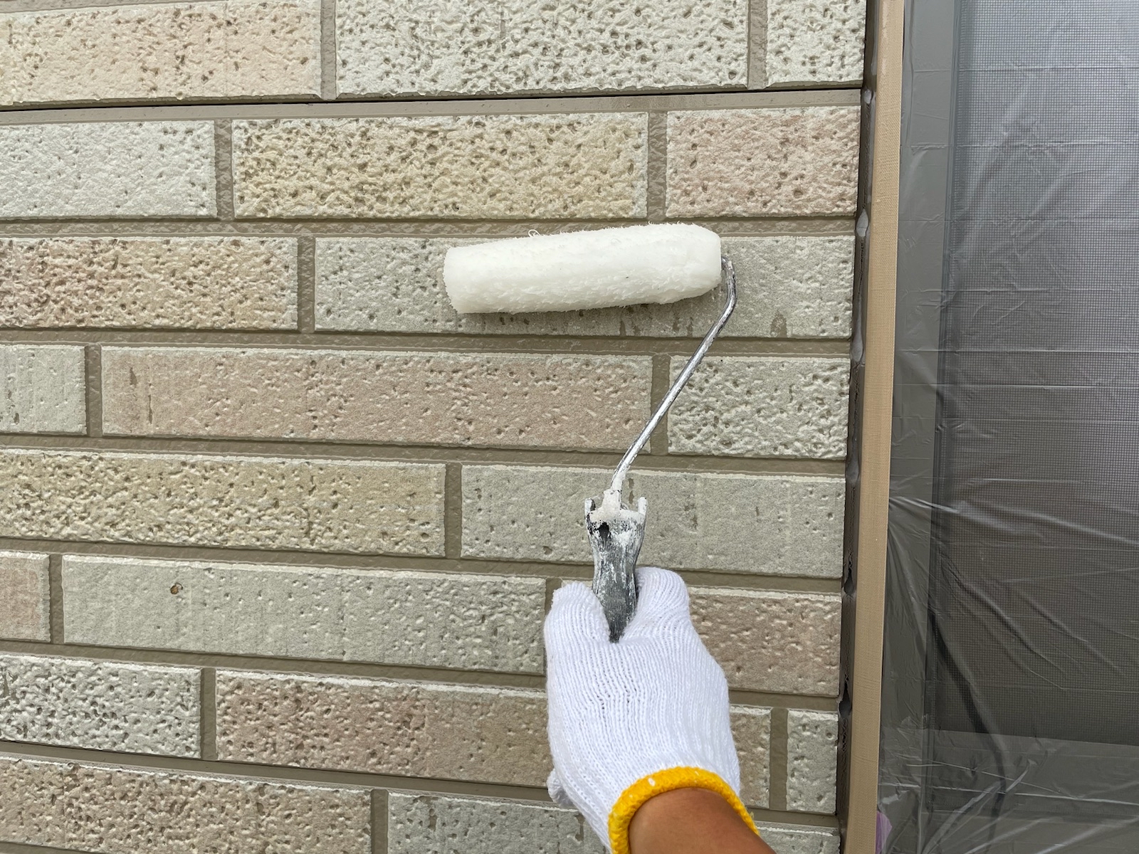 下地処理:外壁材の欠損部をカチオンという補修剤を使って形成しています。