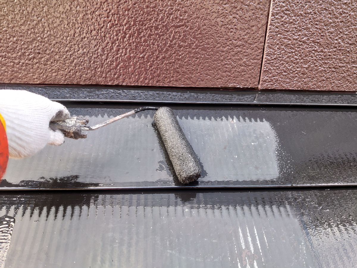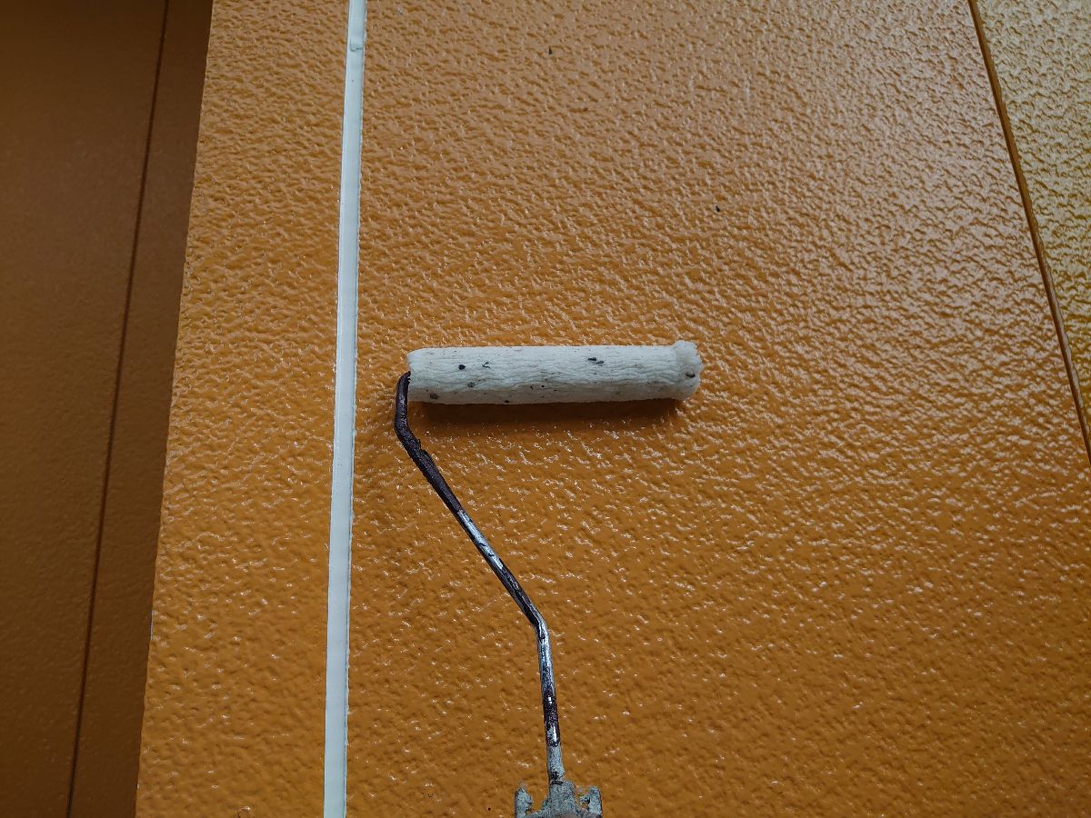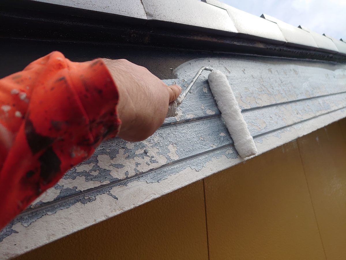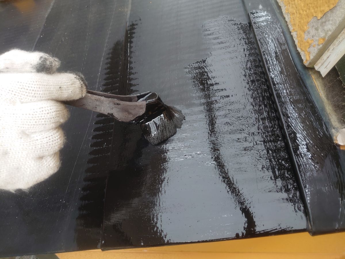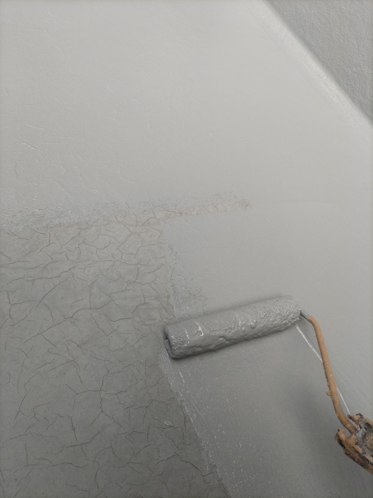 下地補修:外壁材の欠損部をカチオンという補修剤を使って形成しています。