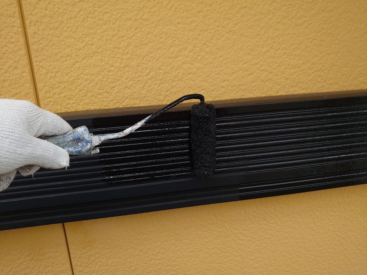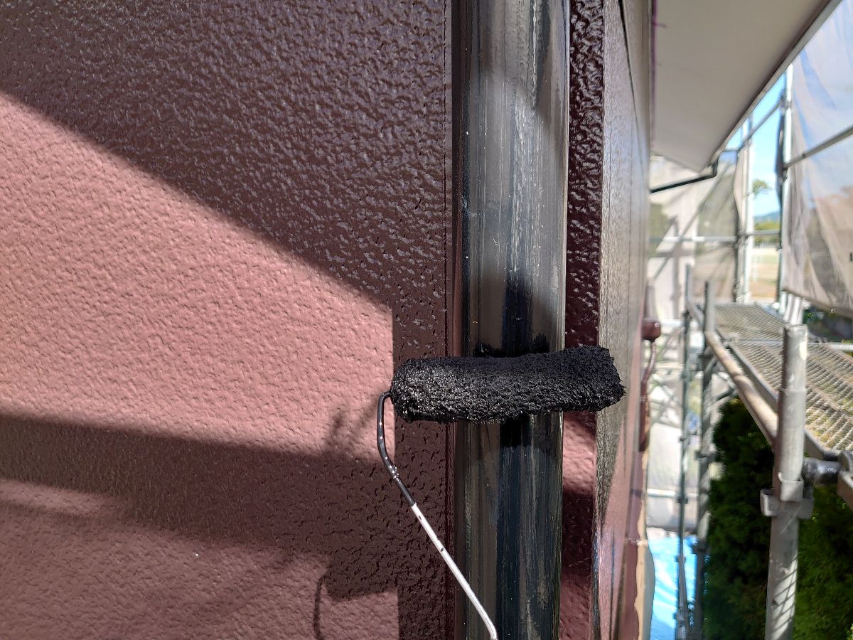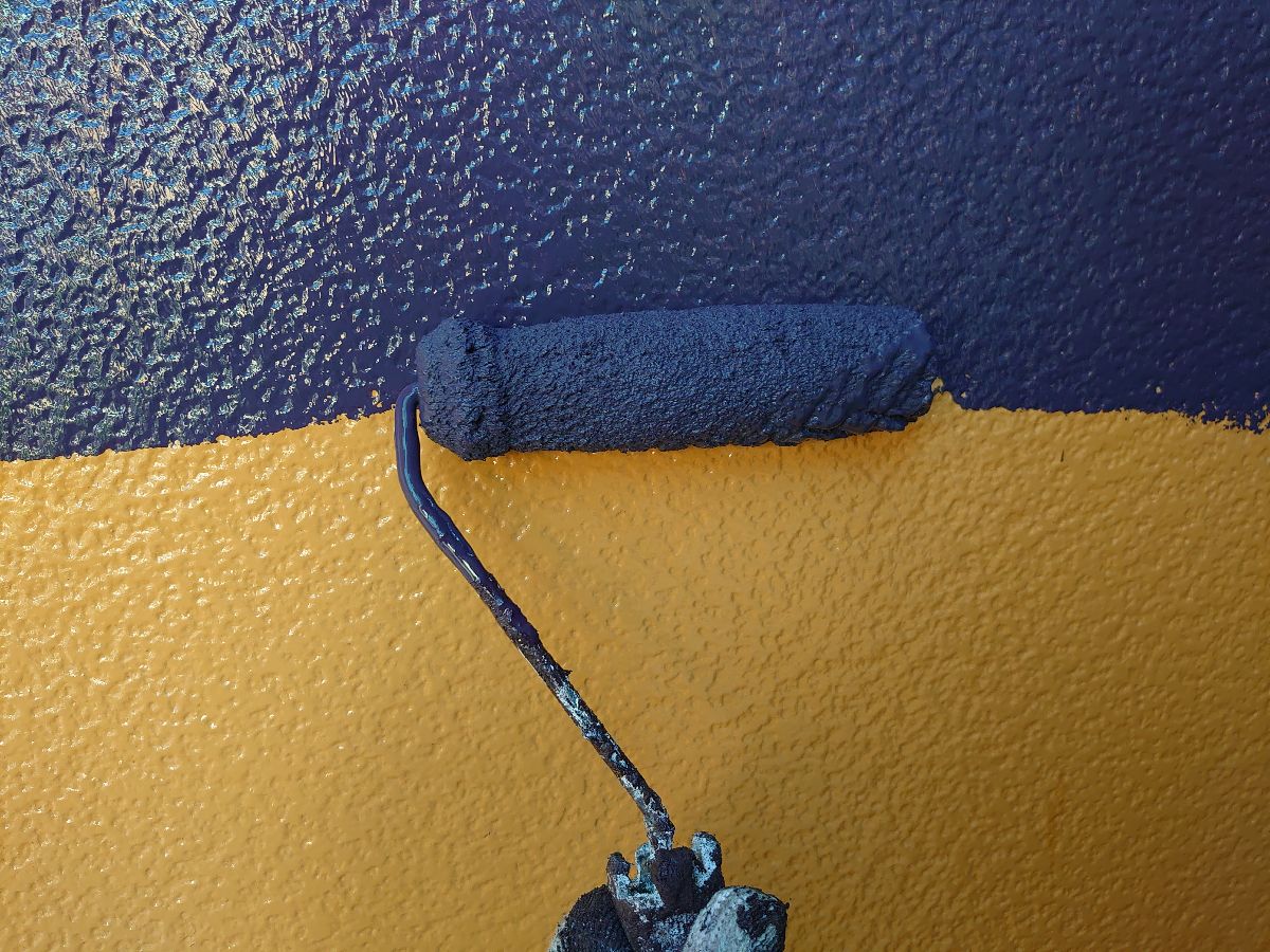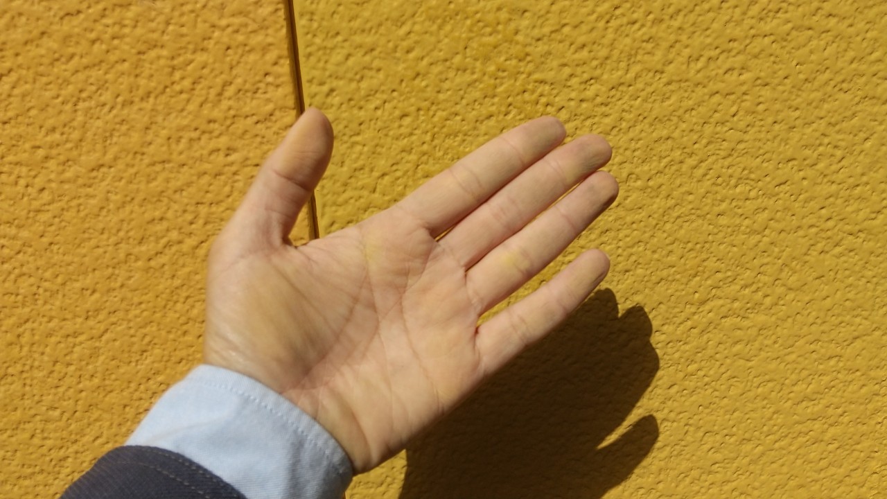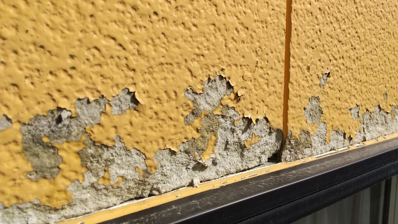 塗膜のチョーキング:外壁の塗膜の劣化が進んで塗料の色成分の顔料がチョークのように粉状になって顕われています。