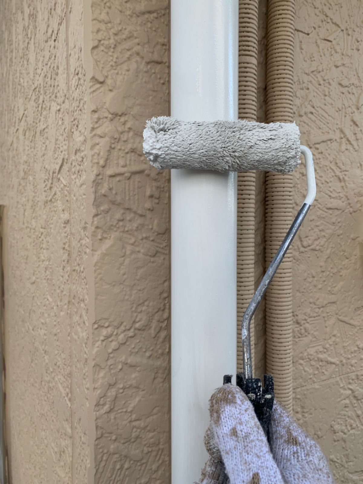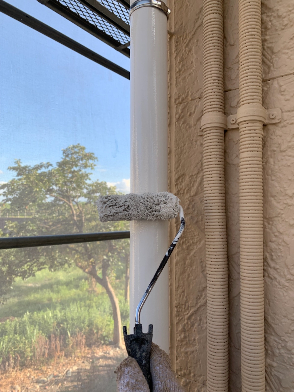 竪樋:上塗り作業中