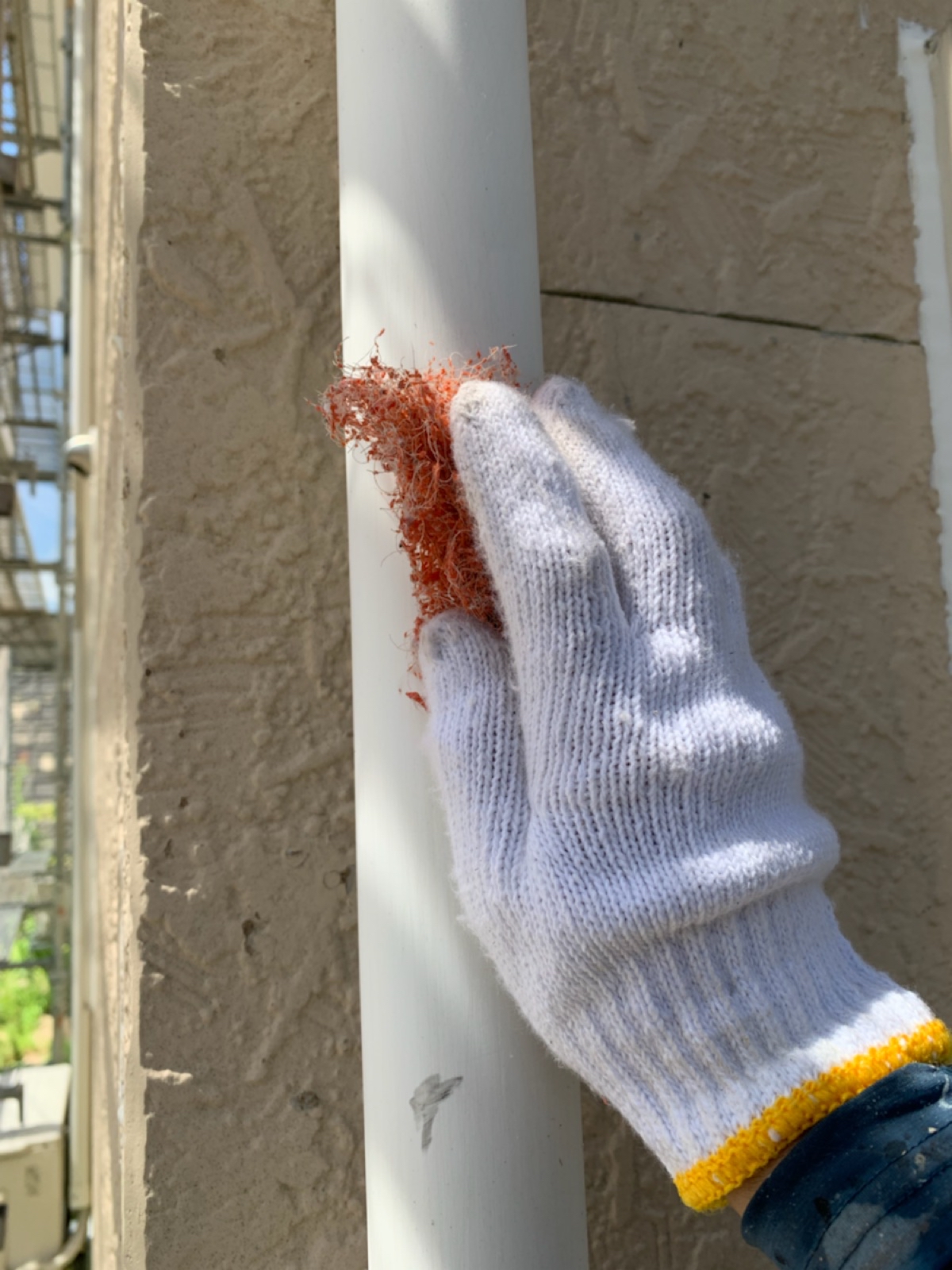 竪樋:ケレン作業中