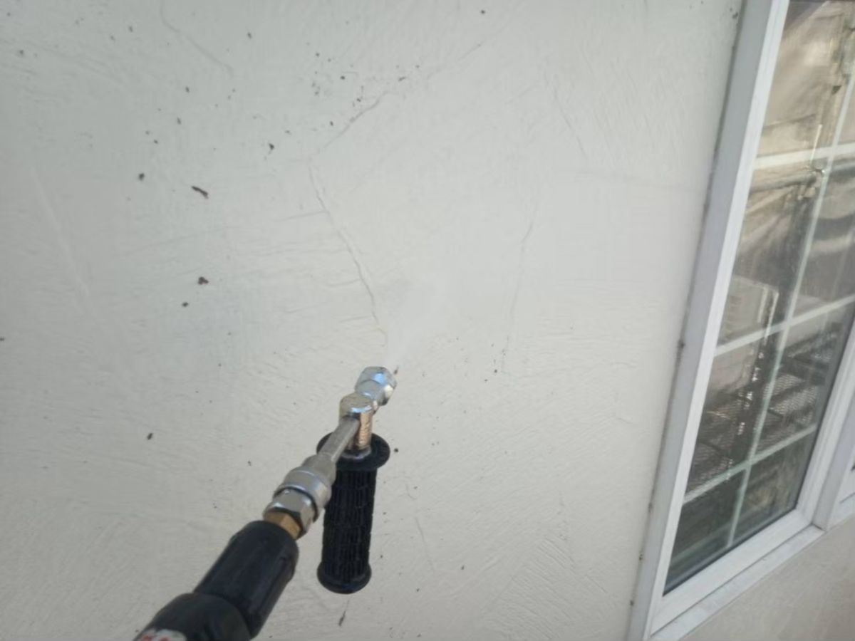 高圧洗浄作業中:古い塗膜や汚れなどを綺麗に洗います