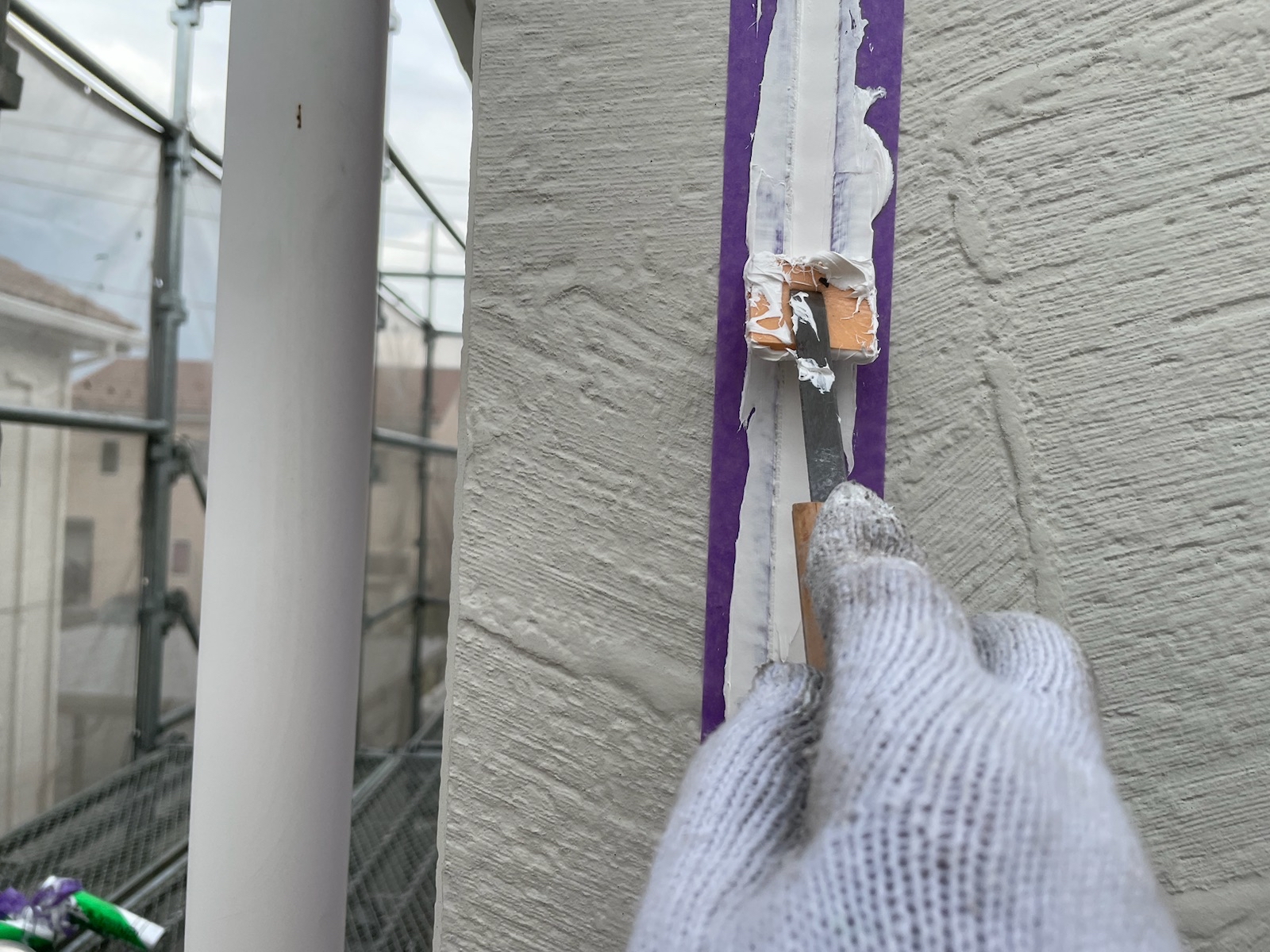プライマー塗布:シーリングの密着性を良くする為にプライマーを塗布します。