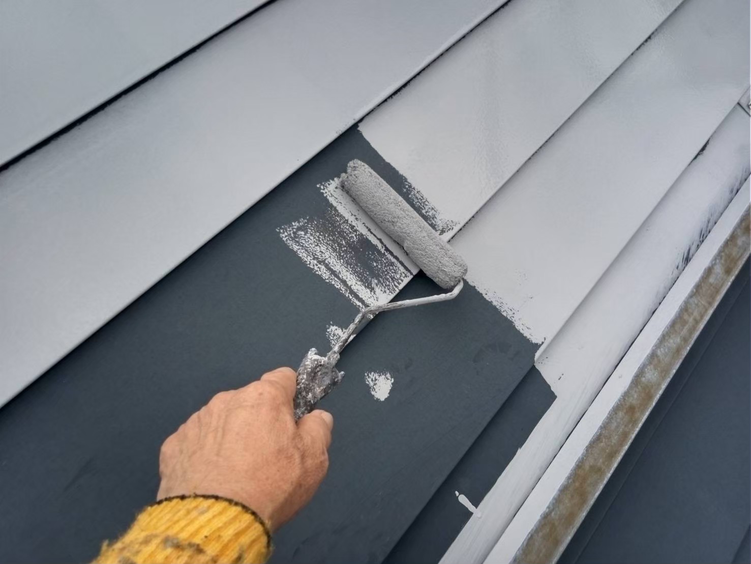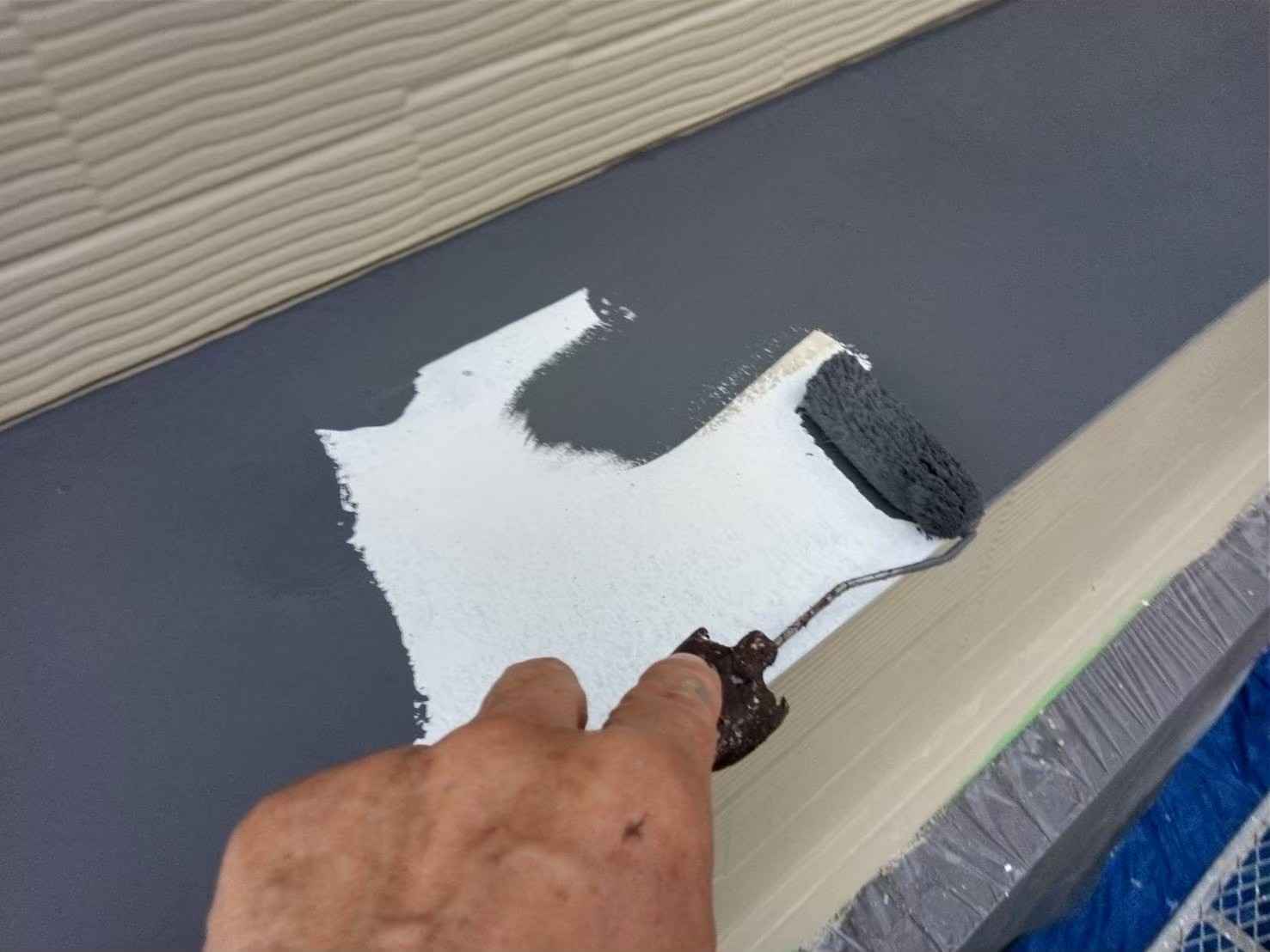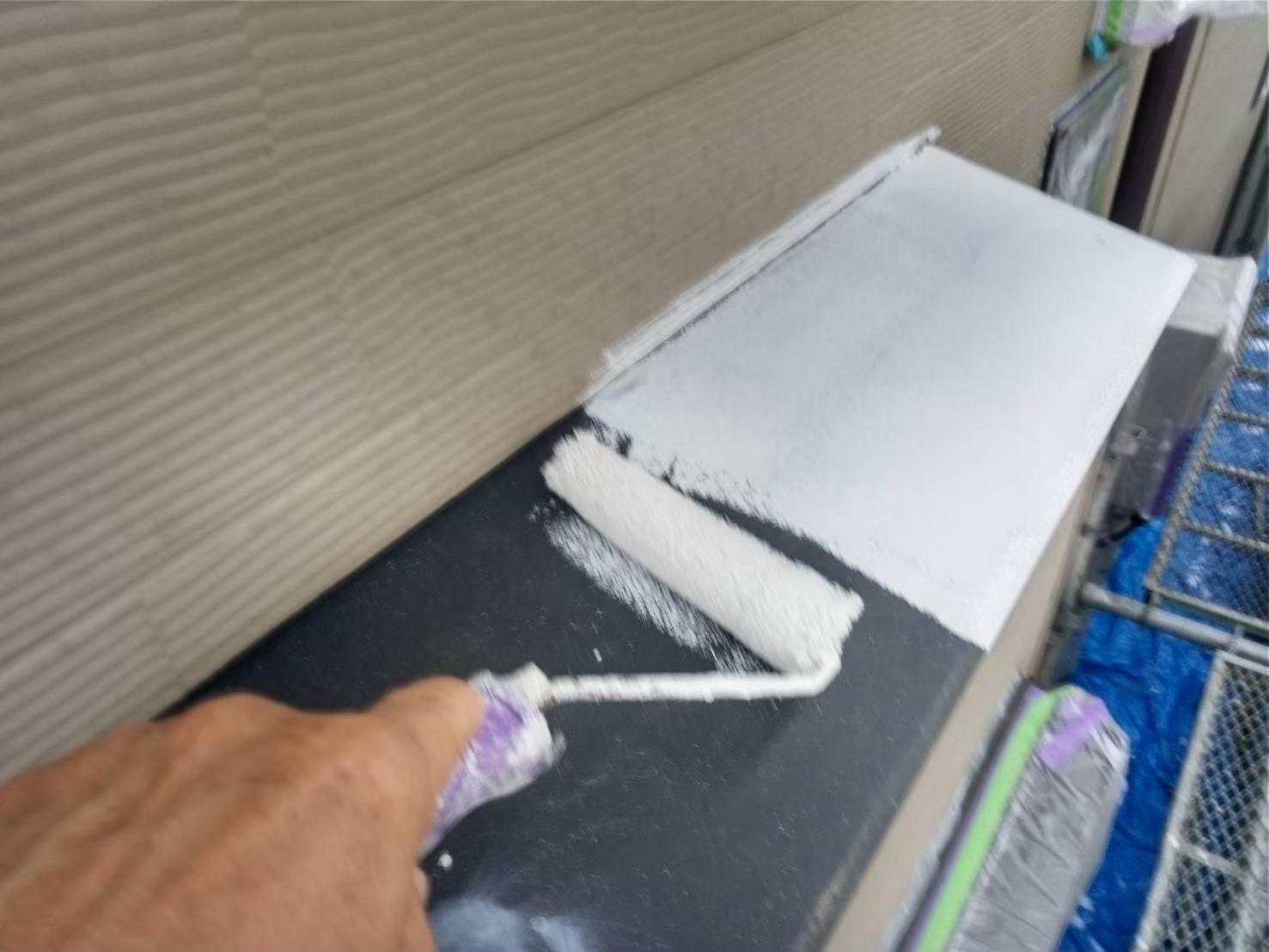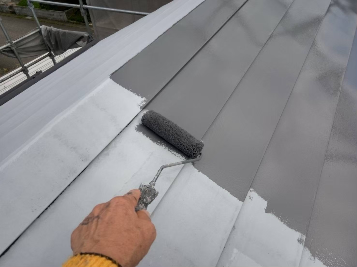 屋根:上塗り作業中