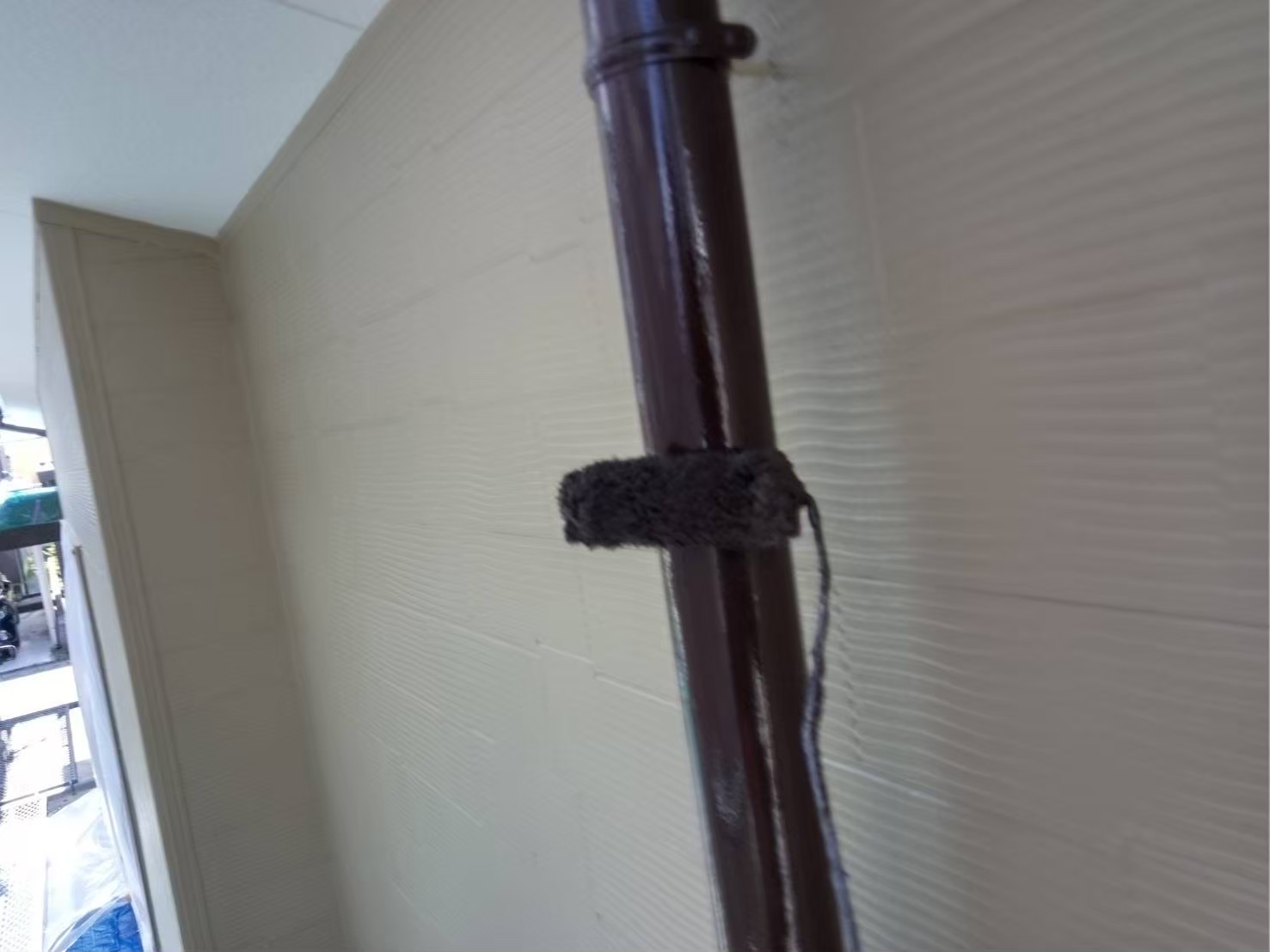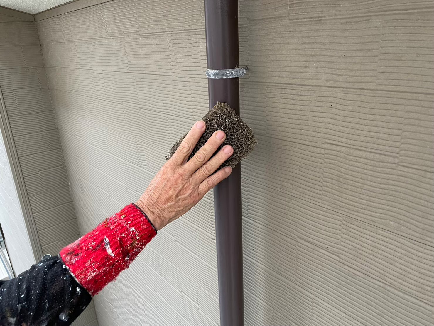 竪樋:上塗り作業中