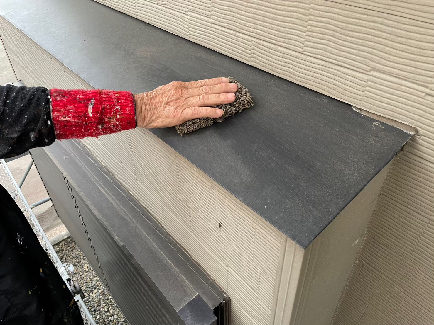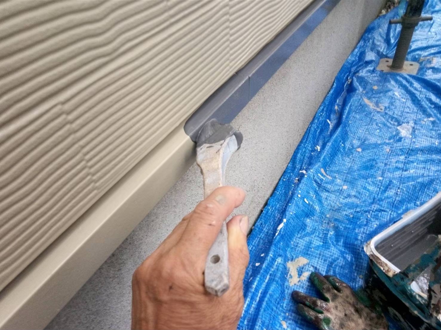 庇:中塗り作業中