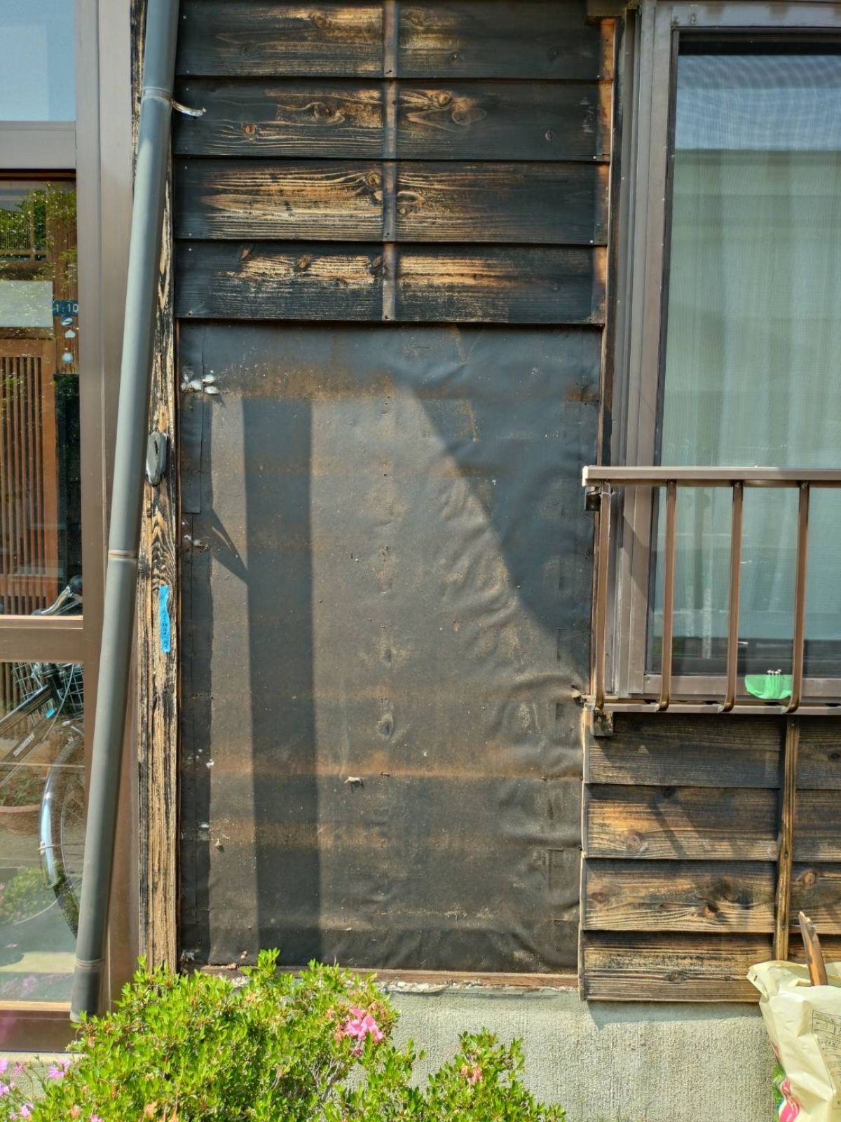 こちらのご自宅は、2面がトタン、他の2面は杉下見でした。