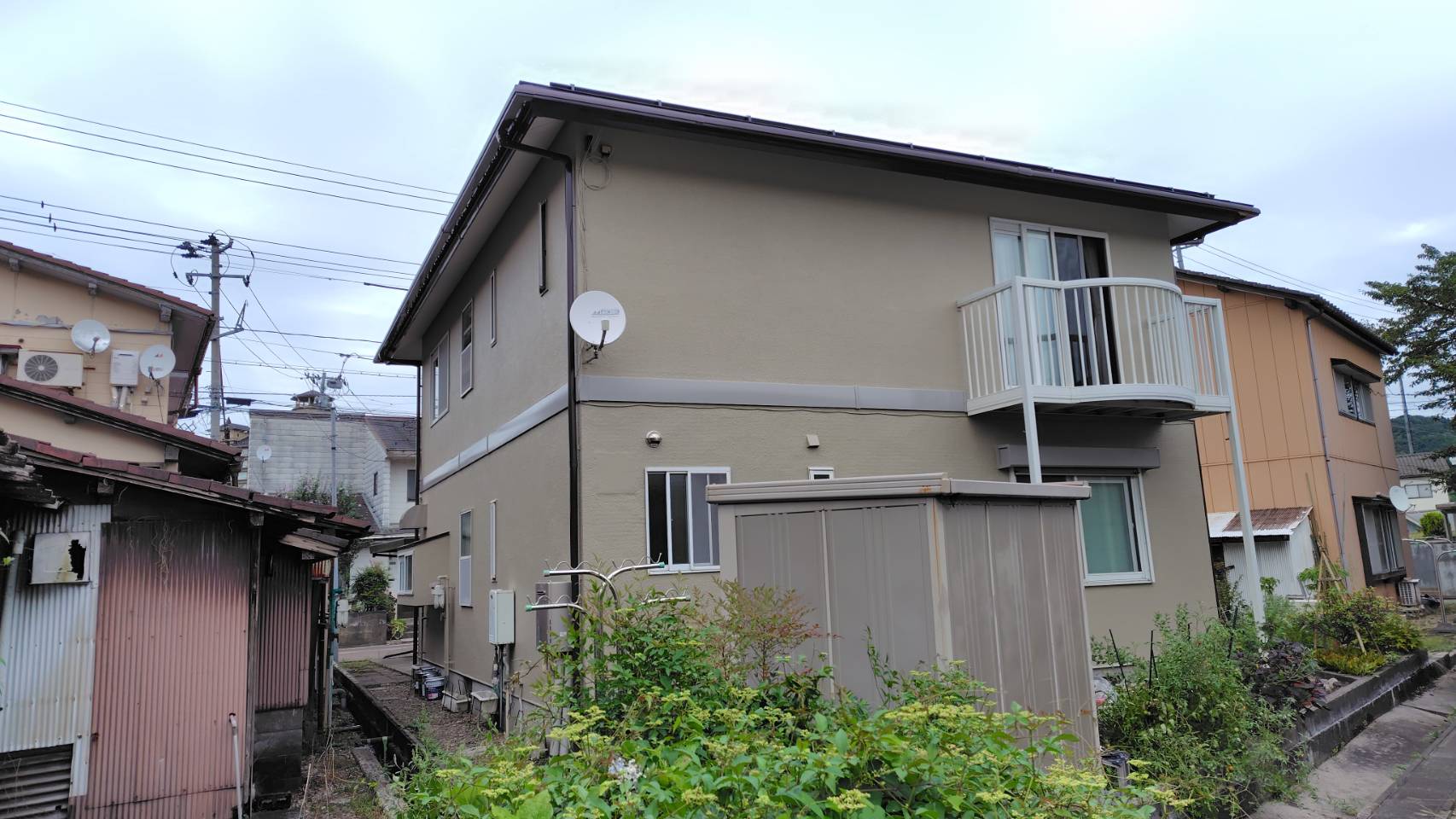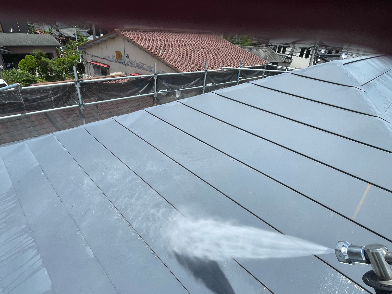 高圧洗浄作業中:古い塗膜や汚れなどを綺麗に洗います。
