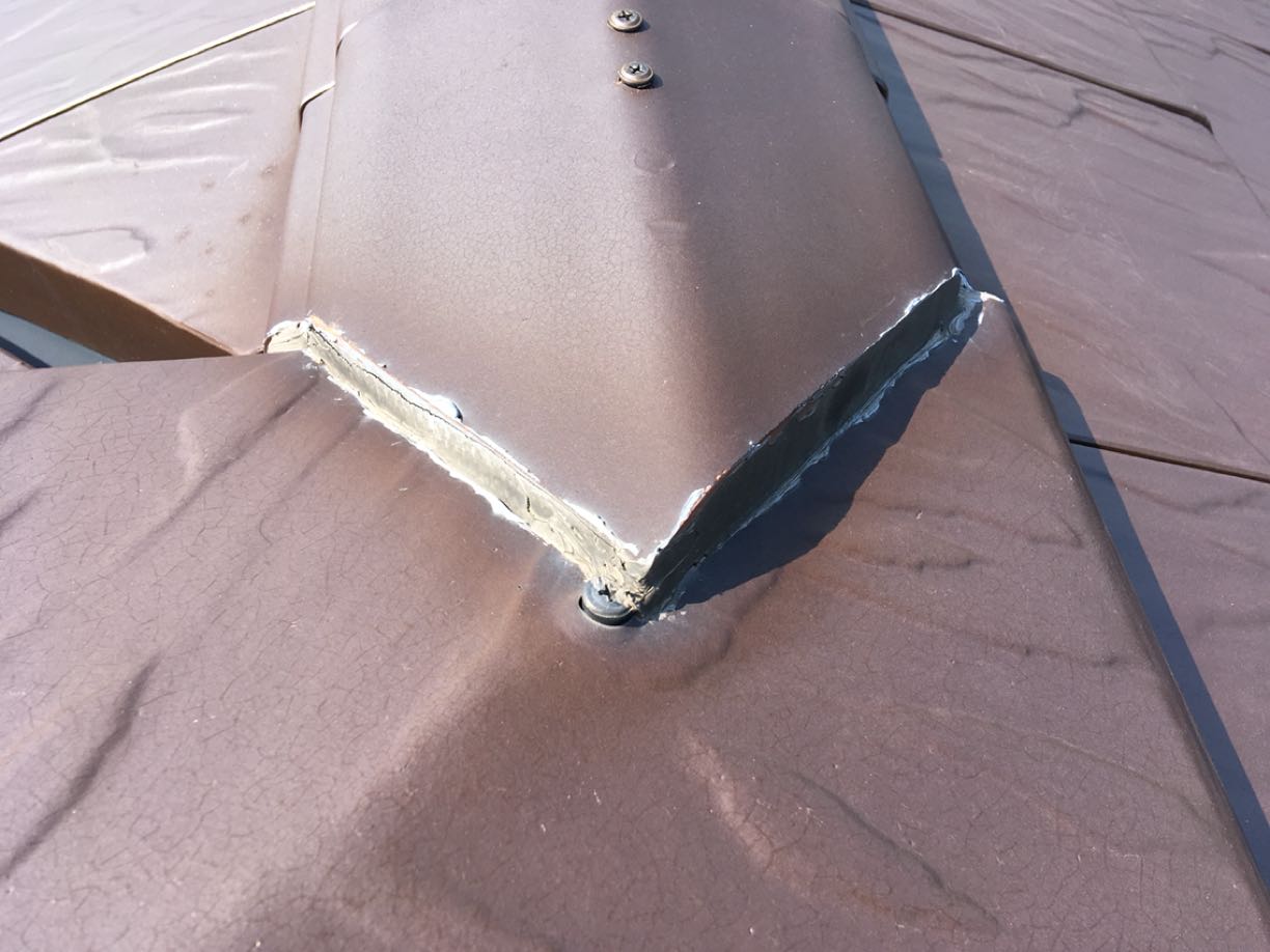 粘土瓦棟部のシーリング、劣化し亀裂が目立ちます