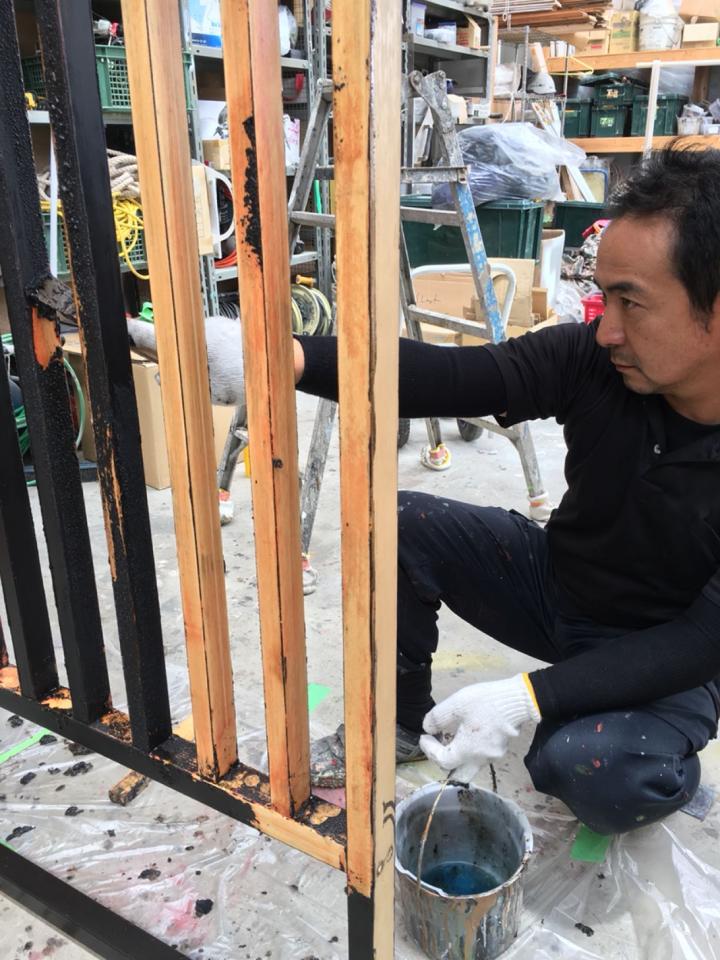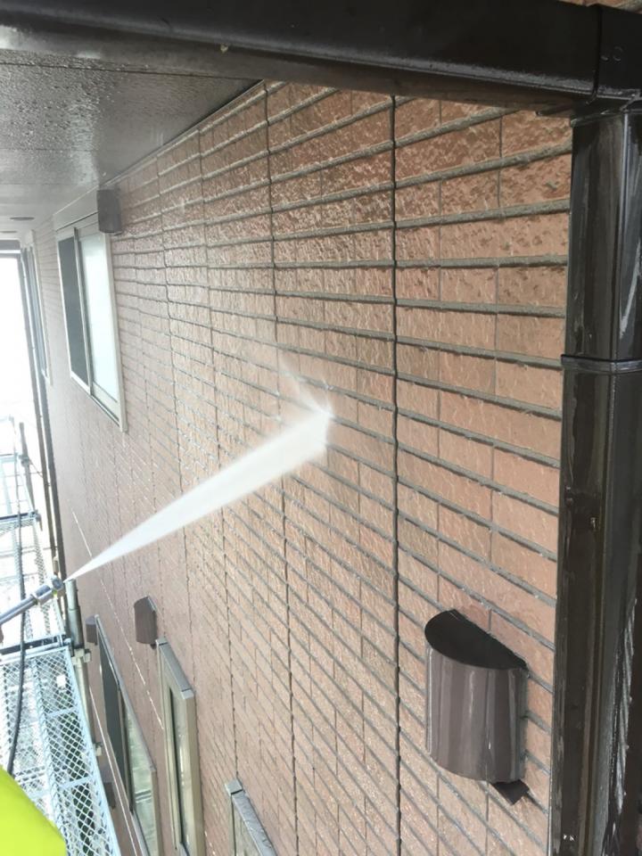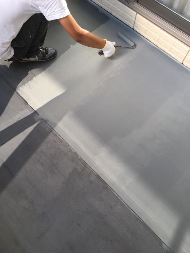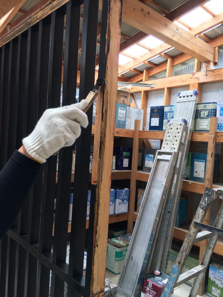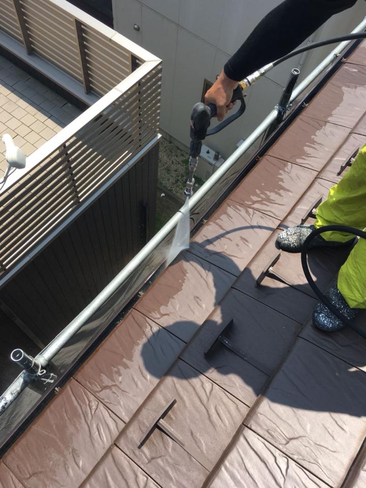 外壁塗装 上塗り1回目 この材料は顔料が特殊でここから色がかなり変わります。