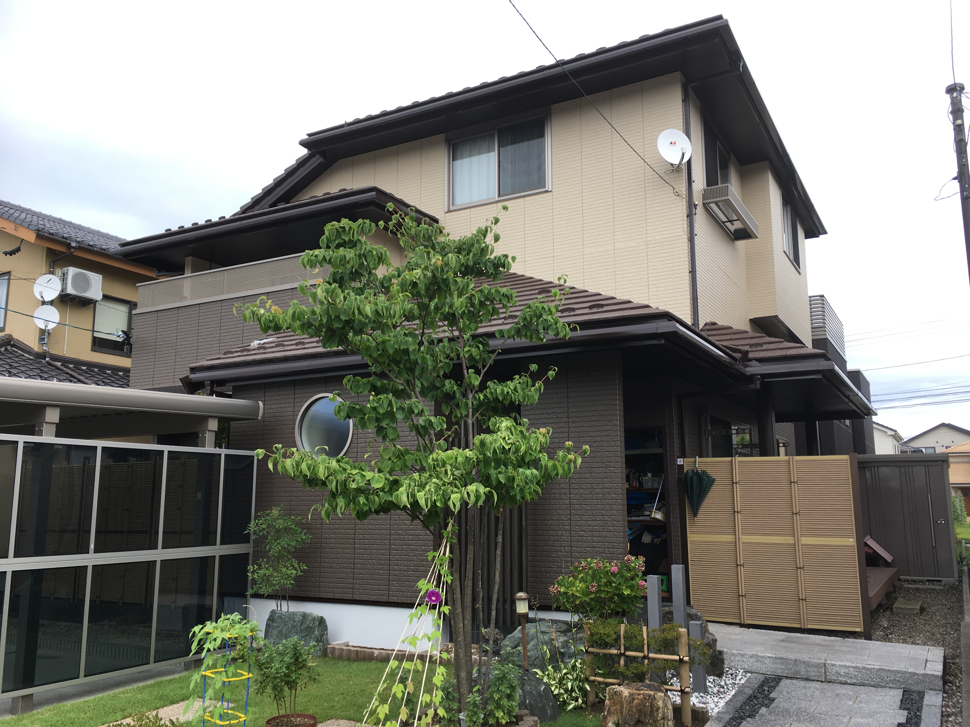 外壁の色選びで大変迷いましたが、色々と提案していただき何度か変更したりでしたが、思っていた色に仕上がりました。又、夏の暑い炎天下での外仕事は職人さんも大変でしたでしょう、ごくろう様でした。