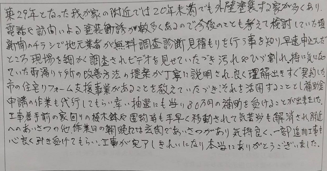 一部追加工事も心良く引き受けてもらい、工事が完了しきれいになり本当にありがとうございました。