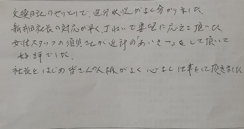 社長をはじめ皆さんの人柄がよく心よく仕事をして頂きました。