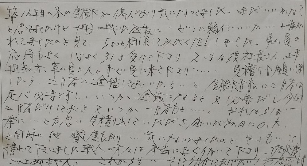 の方、事務員さんとすぐに見に来てくださり....見積もりお願いをしたら