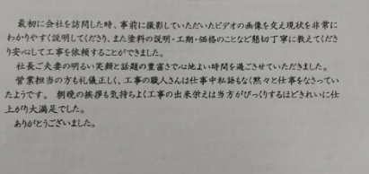 わかりやすく説明してくださり、また塗料の説明・工期・価格のことなど親切丁寧に教えてくださり