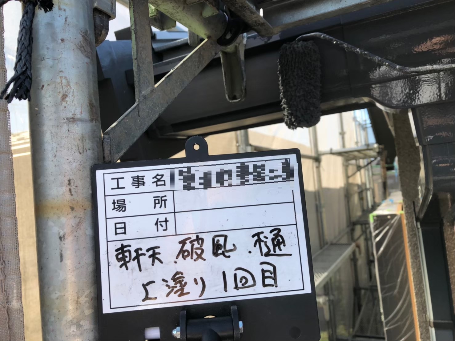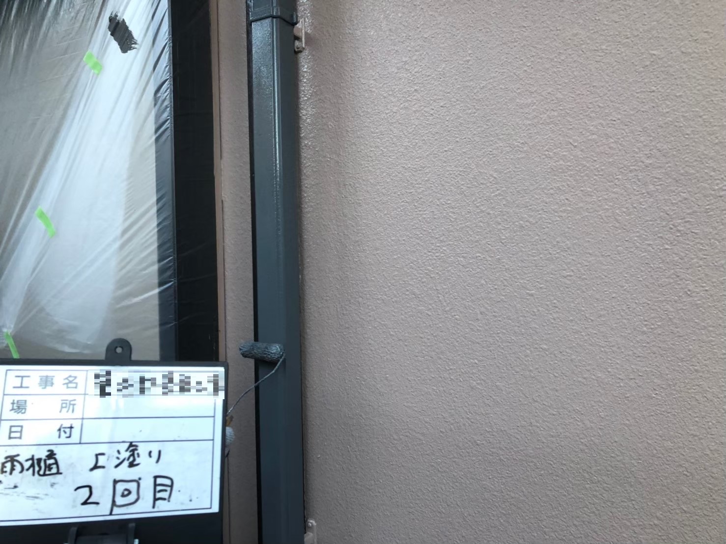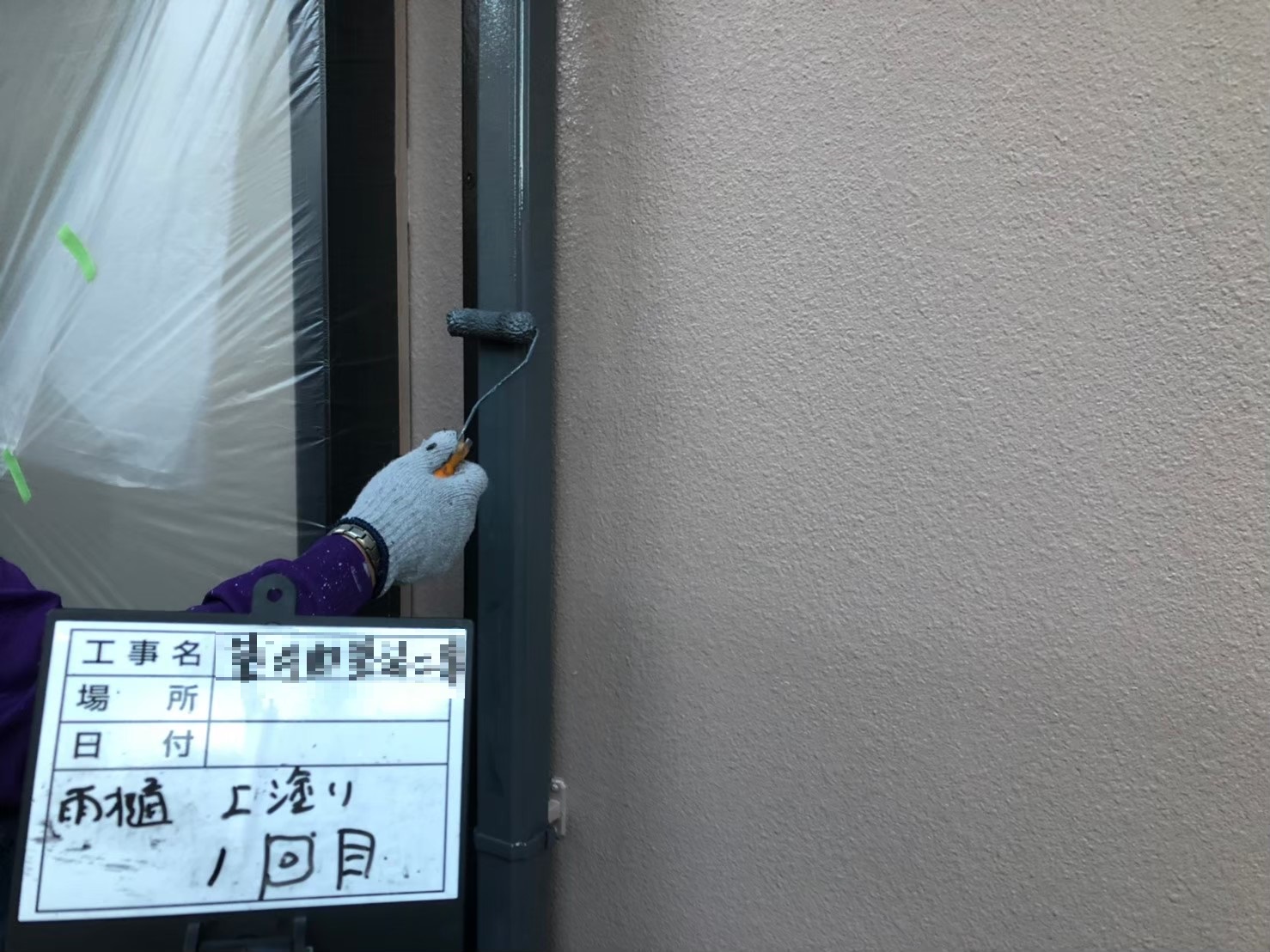 竪樋:上塗り作業中