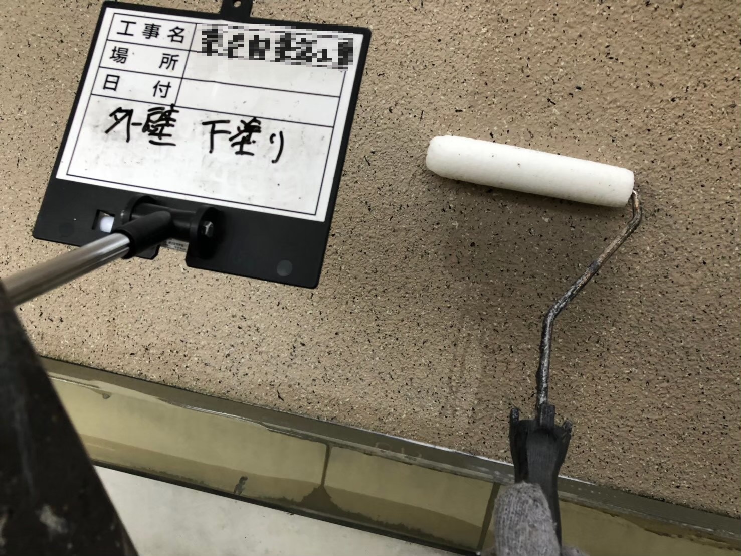 外壁:下塗り作業中