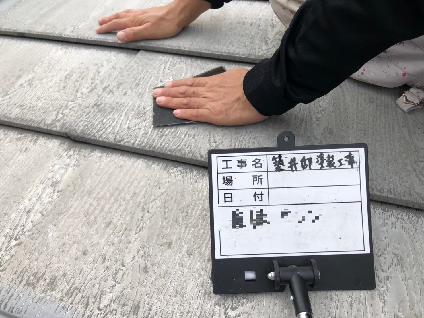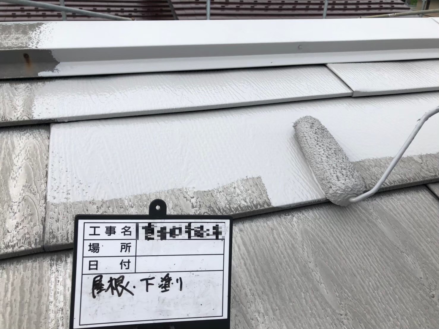 屋根:中塗り作業中