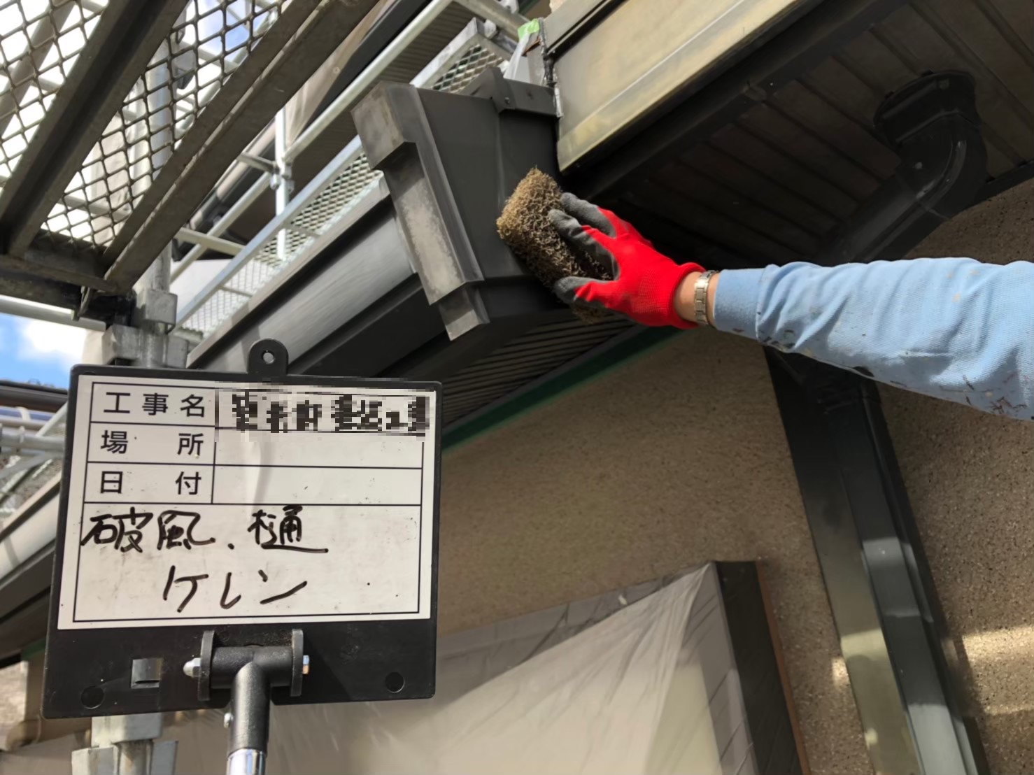 軒樋:目荒らし作業中