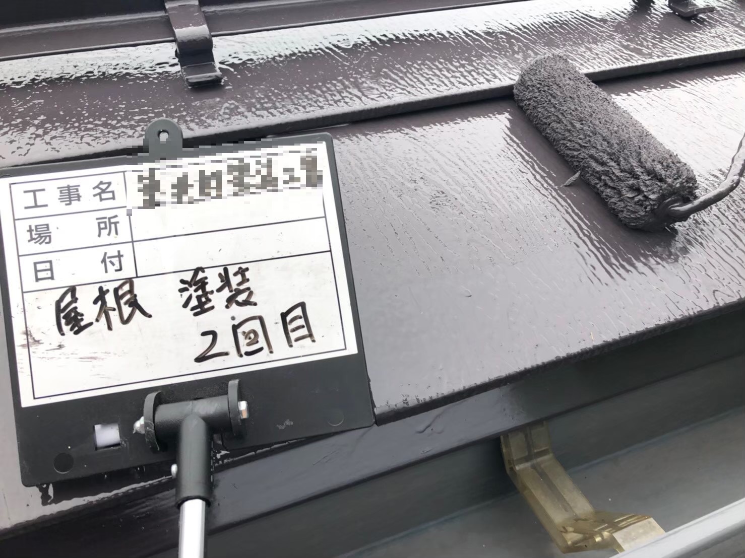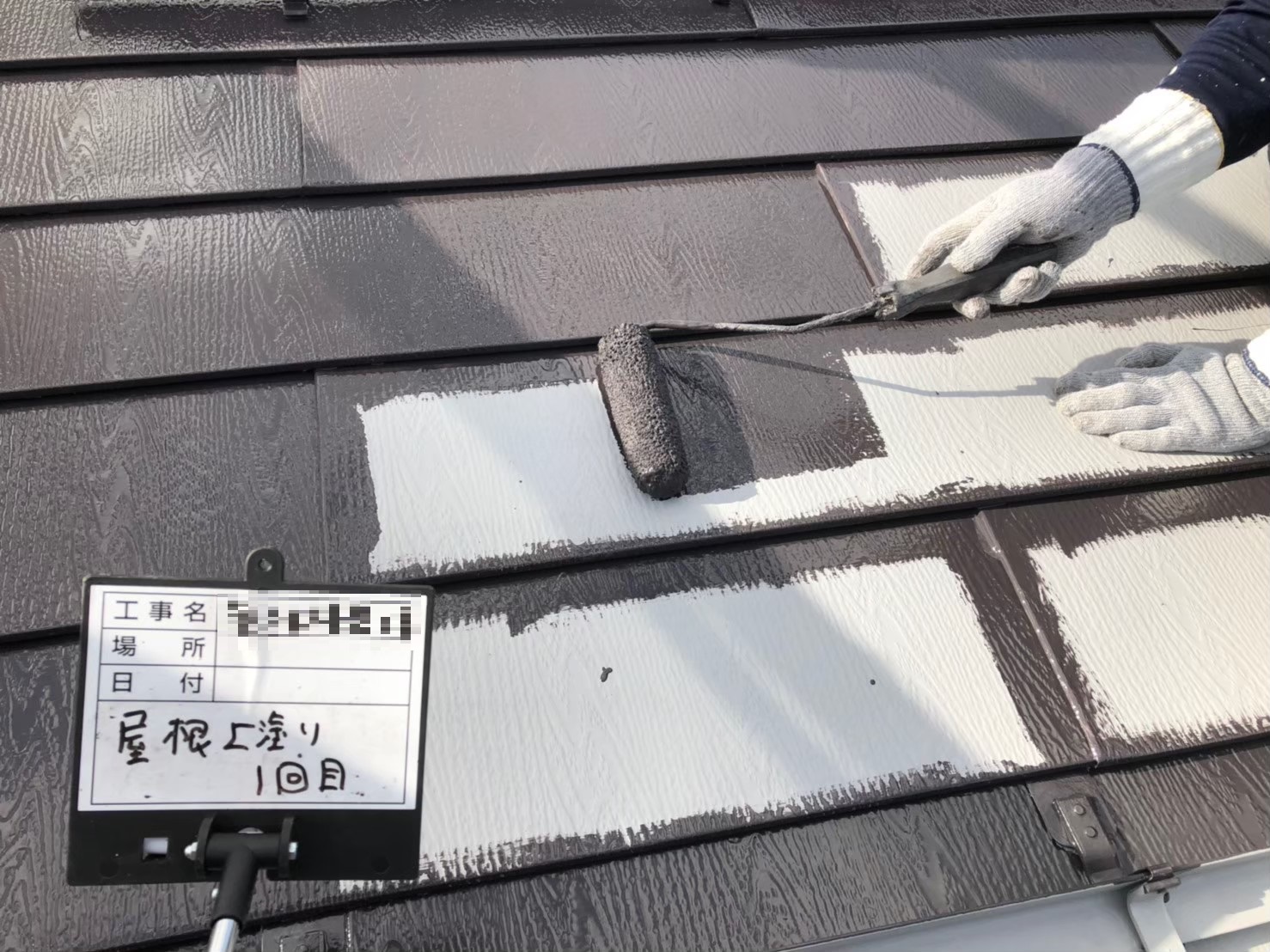 屋根:上塗り作業中