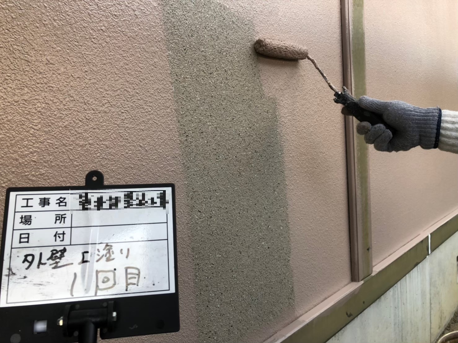 外壁:中塗り作業中