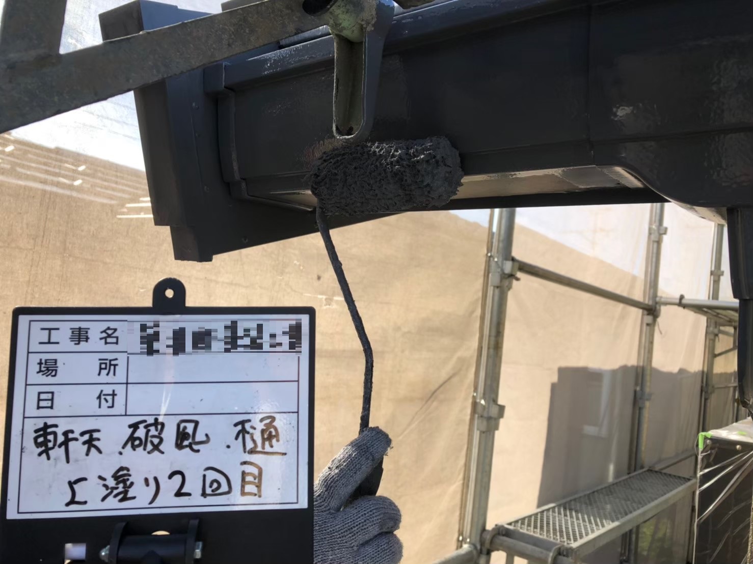 軒樋:上塗り作業中