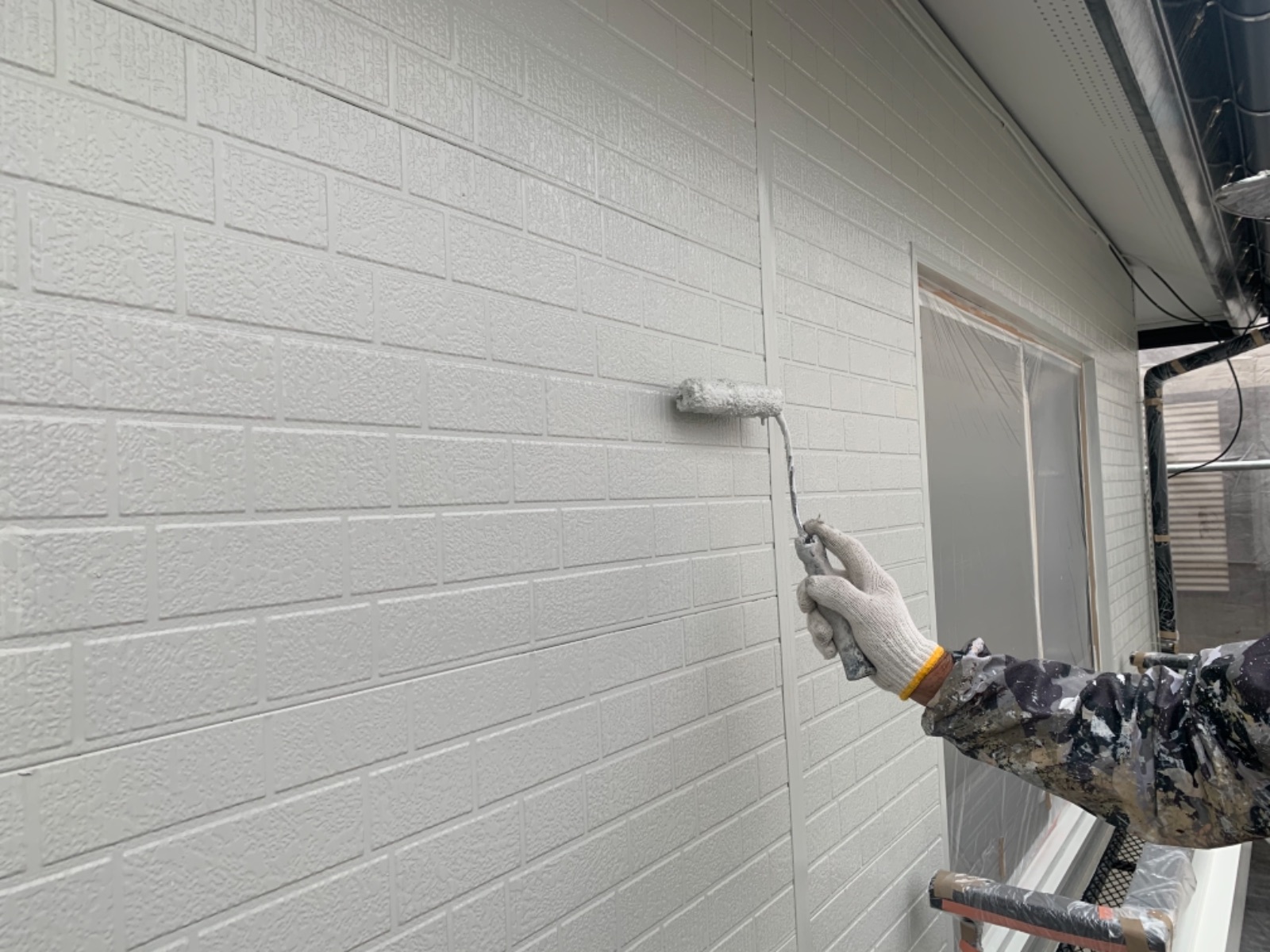 完了:上塗り材は超低汚染リファイン1000Siを使用しました。