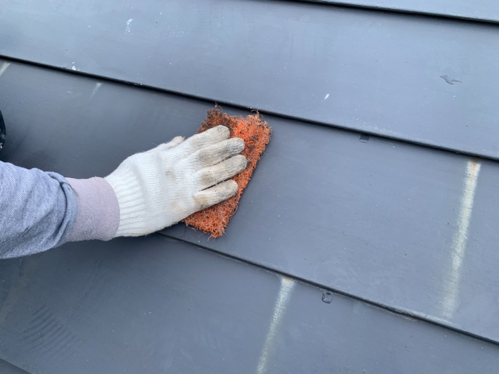 ケレン作業中:錆や洗浄で落としきれなかった汚れなどを落としていきます。
