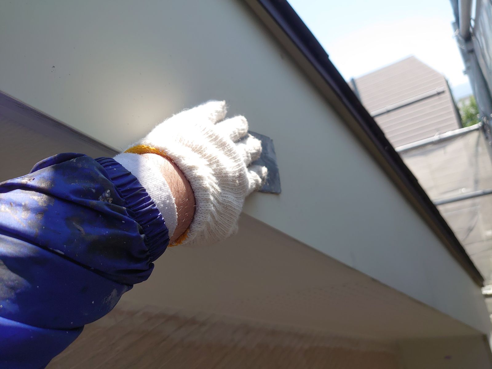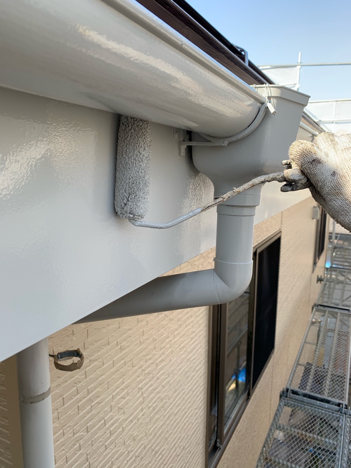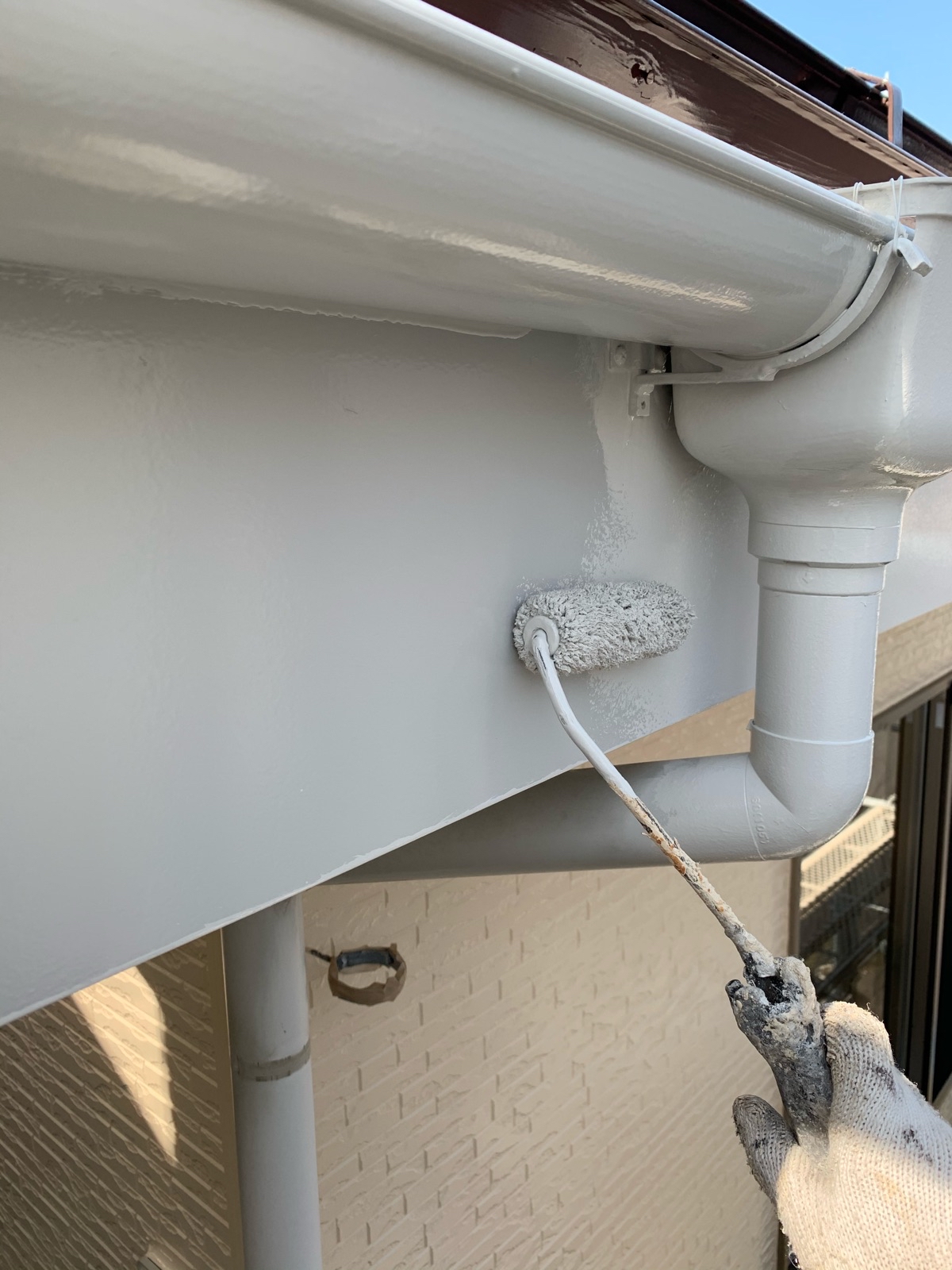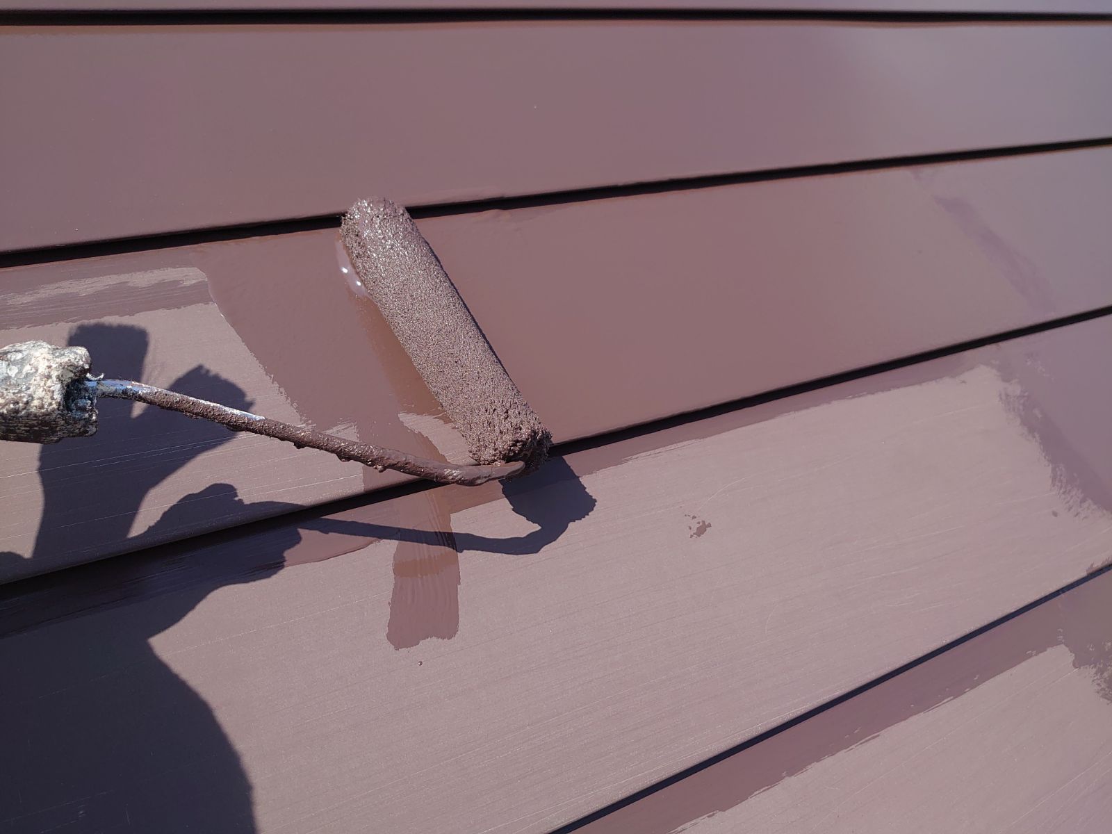 中塗り作業中:上塗り材は超低汚染リファイン1000Si-IRを使用しました。