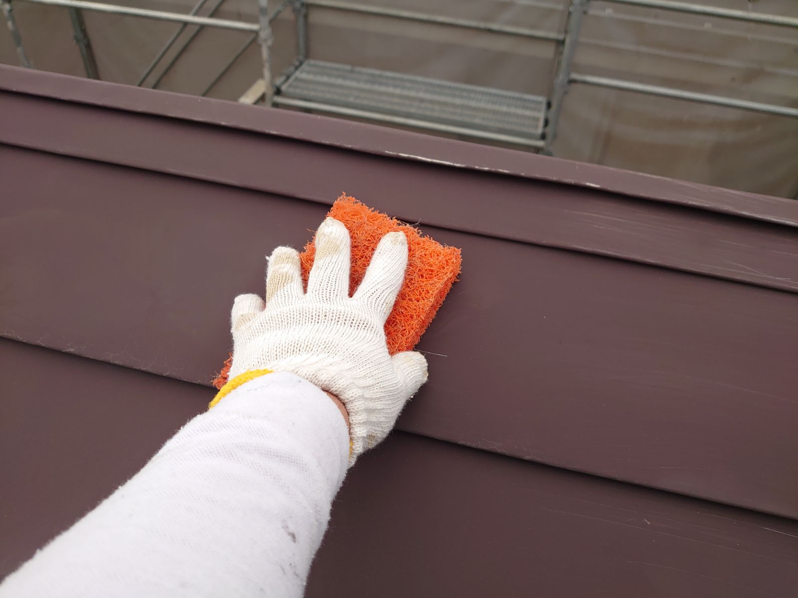 下塗り作業中:下塗り材はエポパワーシーラーを使用しました。