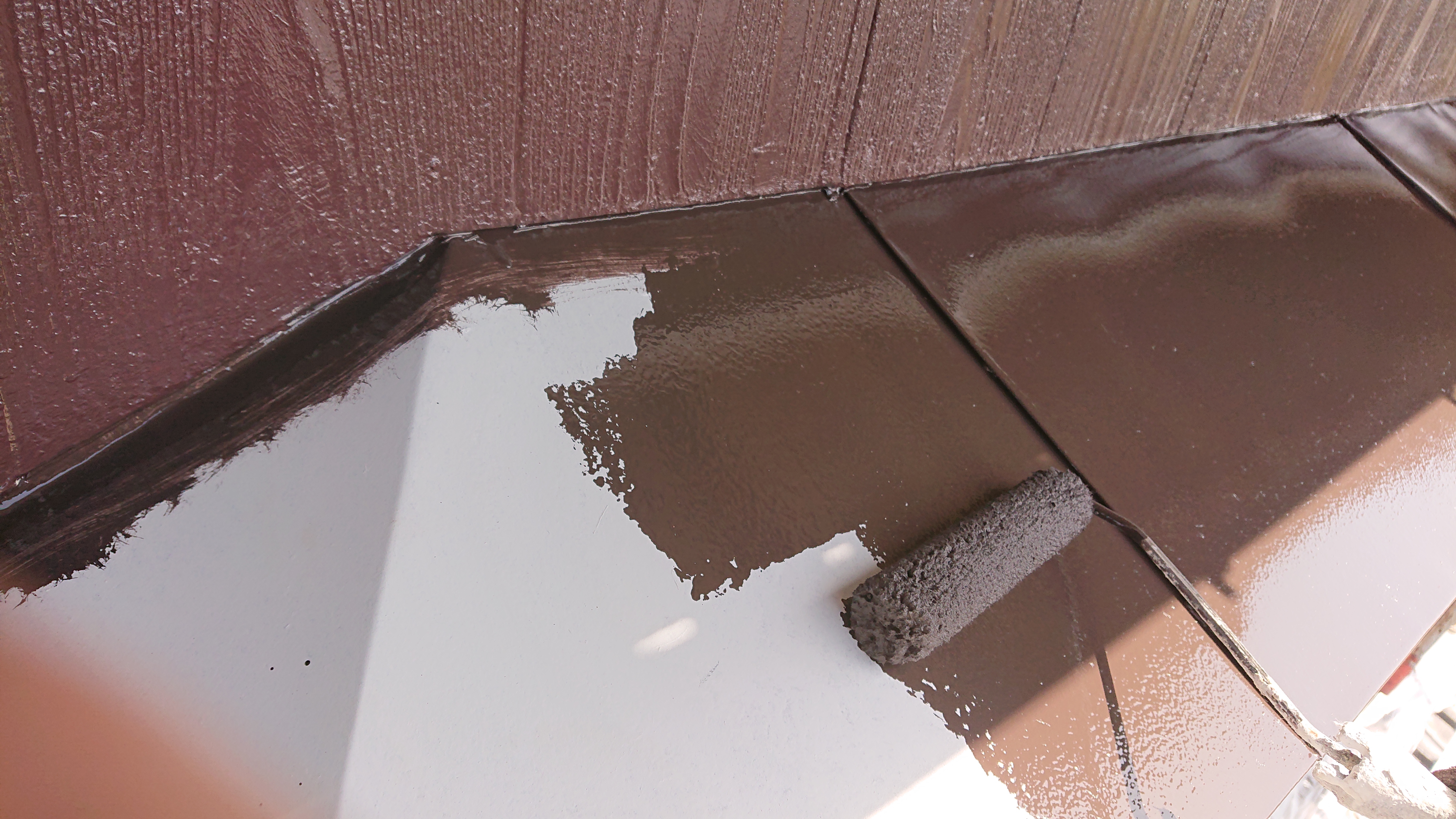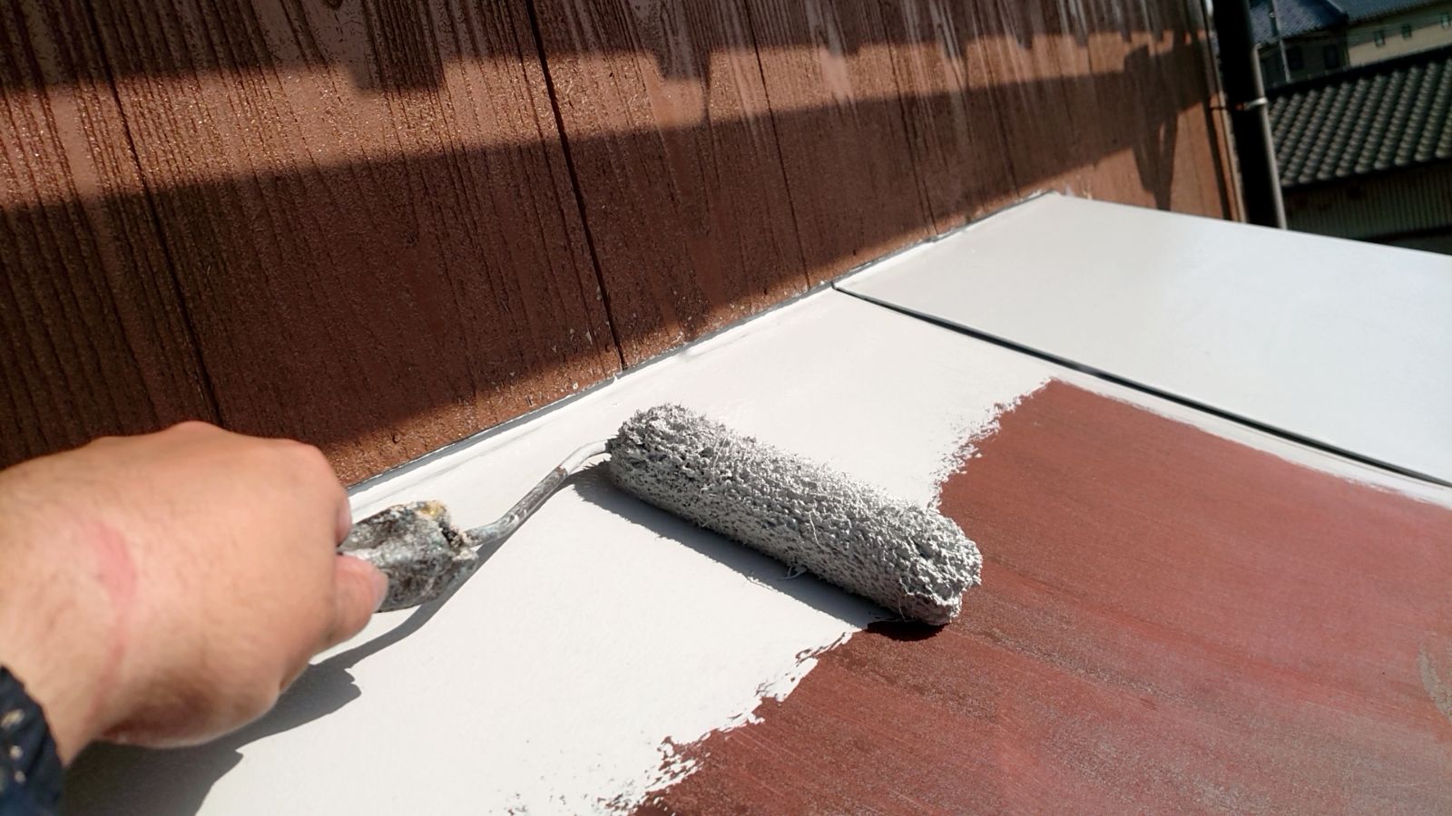 完了:上塗り材は超低汚染リファイン1000MF-IRを使用しました。