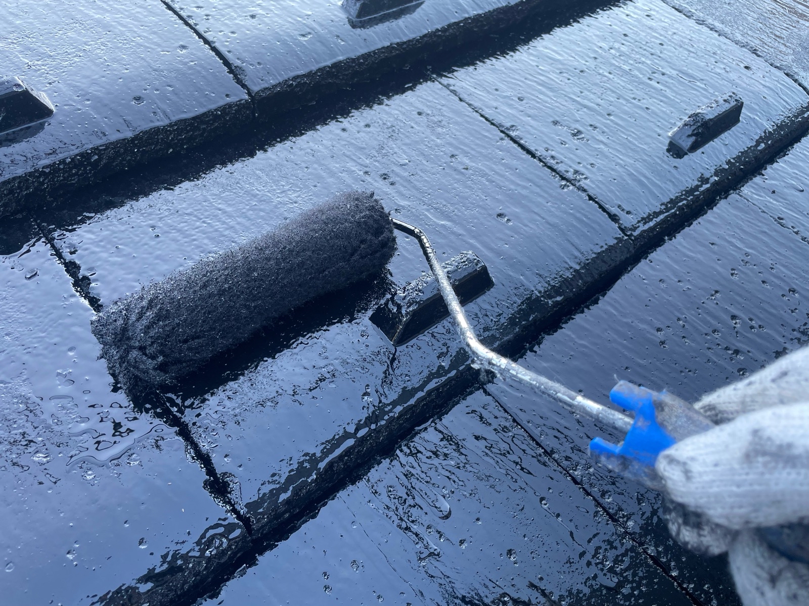新発田市のK様邸では、屋根塗装の仕上げ作業に入りました。K様邸は戸建て住宅で、特に屋根は日差しや雨風の影響を直接受けるため、材質により定期的な塗装メンテナンスが必要不可欠です。作業工程としては、まず劣化した旧塗膜を高圧洗浄で丁寧に除去し、下地の状態を整えました。その後、下塗り材で屋根材の吸い込みを抑え、上塗り塗料の密着性を高めます。屋根塗装は、建物の美観を向上させるだけでなく、雨漏りのリスクを軽減し、住まいの耐久性を高める上で非常に重要な工事です。