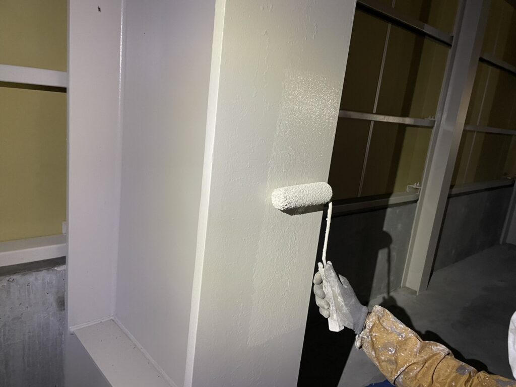 私たちは、細部にわたってムラのない均一な塗膜を形成することにこだわり、丁寧に上塗りを重ねています。また、書庫や内装塗装では、それぞれの使用環境に適した機能性を持つ塗料を選定し、丁寧に施工を進めました。塗装の仕上がりを左右するのは、実は目に見えない下地調整です。塗料がしっかりと密着するように手間をかけることで、外壁塗装や内装塗装問わず、長年にわたって美しさと機能性を保つことができるのです。建物の小さなひび割れなどを放置すると、そこから水が侵入し、やがて雨漏りや建物の構造的な問題へと発展しかねません。